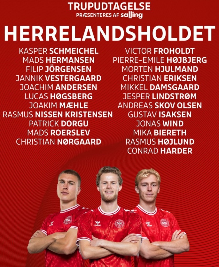 3月11日讯 今天,丹麦足协在官方社媒公布了新一期国家队球员名单,霍伊伦领衔,小舒梅切尔、埃里克森在列